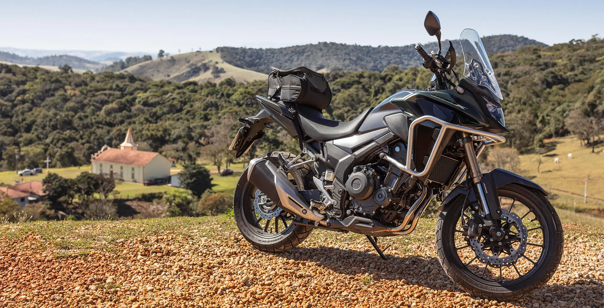 O design da nova CB 500X destaca-se da multidão com seu estilo compacto de crossover e um toque robusto e agressivo. Novas cores e gráficos vibrantes são o complemento perfeito para a nova e robusta suspensão invertida na cor cobre.